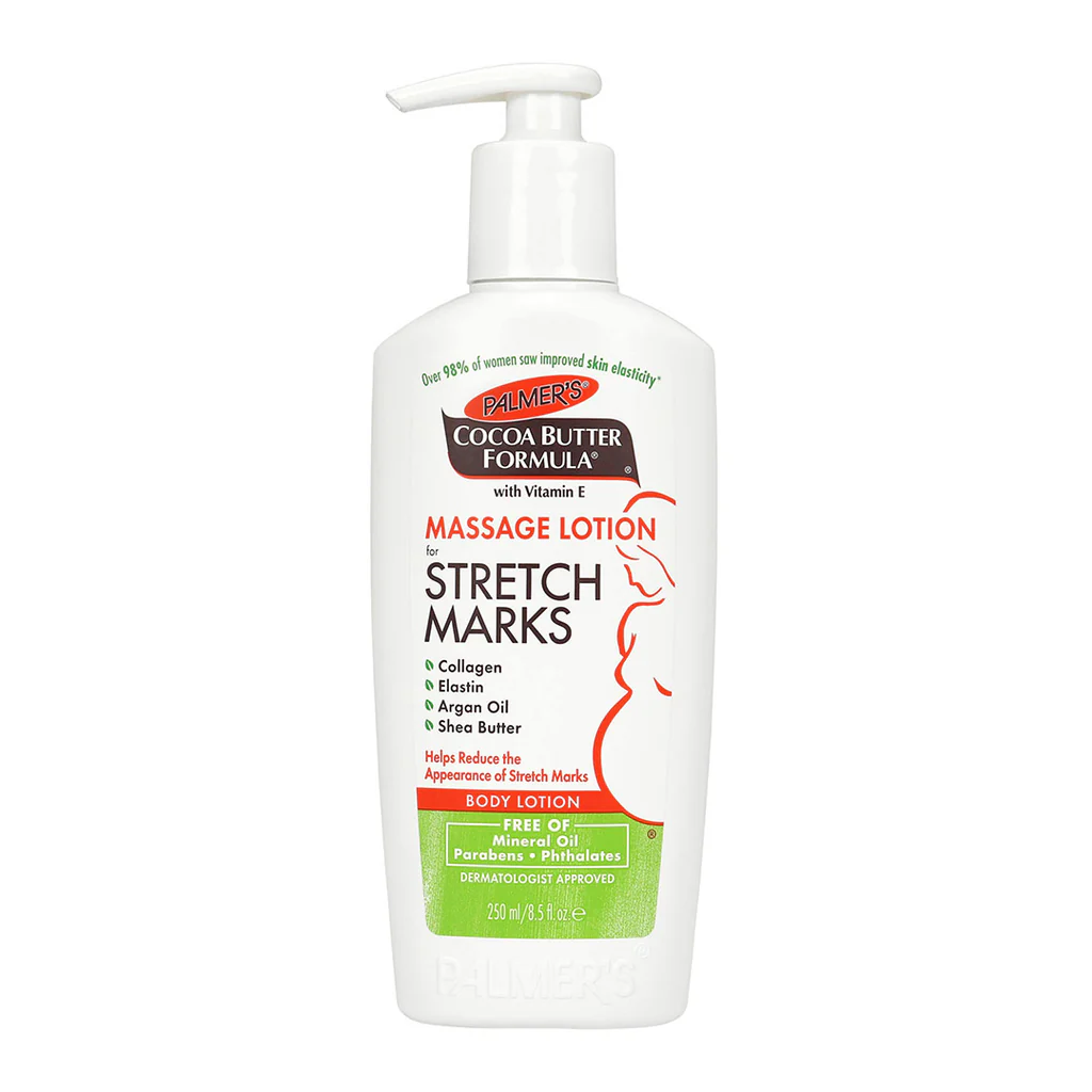 Palmer’s Cocoa Butter Formula Massage Lotion helps visibly improve skin elasticity and reduce the appearance of stretch marks. Widely recommended for stretch marks during and after pregnancy or weight fluctuation.