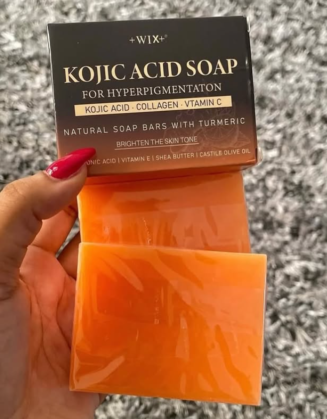 Wix Kojic Acid Soap is a brightening soap formulated to treat dark spots, acne scars, sunburns, and uneven skin tone. It commonly features a concentrated Kojic Acid formula, often accompanied by moisturizing ingredients like coconut oil, glycerin, and Vitamin C for a radiant, smooth skin texture. It is suitable for both face and body.